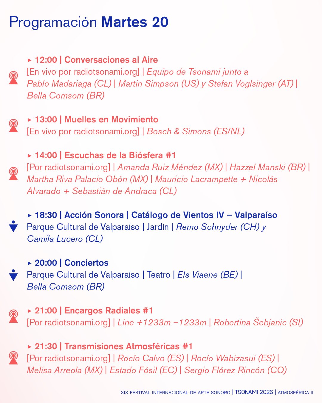 A partir de una convocatoria abierta, Tsonami ha seleccionado a 50 artistas radiales de distintos países de Latinoamérica y Europa que formarán parte de las transmisiones del #FestivalTsonami2026